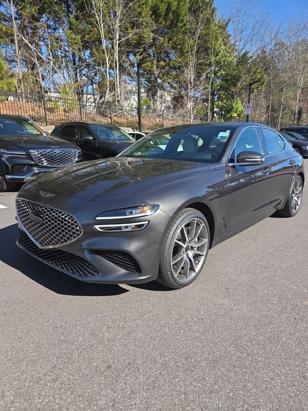 2025 Genesis G70 2.5T 8-Speed Automatic I4 Genesis Certified Pre-Owned Certified, 4-Wheel Disc Brakes, 6 Speakers, ABS brakes, Air Conditioning, Alloy wheels, AM/FM radio: SiriusXM, Android Auto & Apple CarPlay, Anti-whiplash front head restraints, Auto High-beam Headlights, Auto-dimming Rear-View mirror, Automatic temperature control, Brake assist, Bumpers: body-color, Delay-off headlights, Driver door bin, Driver vanity mirror, Dual front impact airbags, Dual front side impact airbags, Electronic Stability Control, Emergency communication system: Genesis Connected Services, Exterior Parking Camera Rear, Four wheel independent suspension, Front anti-roll bar, Front Bucket Seats, Front Center Armrest, Front dual zone A/C, Front reading lights, Fully automatic headlights, Garage door transmitter: HomeLink, Heated door mirrors, Heated front seats, Heated Multi-Adjustable Front Bucket Seats, Illuminated entry, Knee airbag, Leather steering wheel, Leatherette Seating Surfaces, Low tire pressure warning, Navigation System, Occupant sensing airbag, Outside temperature display, Overhead airbag, Overhead console, Panic alarm, Passenger door bin, Passenger vanity mirror, Power door mirrors, Power driver seat, Power passenger seat, Power steering, Power windows, Radio: AM/FM/SiriusXM/HD Audio System, Rear anti-roll bar, Rear reading lights, Rear seat center armrest, Rear side impact airbag, Rear window defroster, Remote keyless entry, Security system, Speed control, Speed-Sensitive Wipers, Split folding rear seat, Steering wheel mounted audio controls, Tachometer, Telescoping steering wheel, Traction control, Trip computer, Turn signal indicator mirrors, Variably intermittent wipers, Wheels: 19" x 8.0J Fr & 19" x 8.5J Rr Alloy.