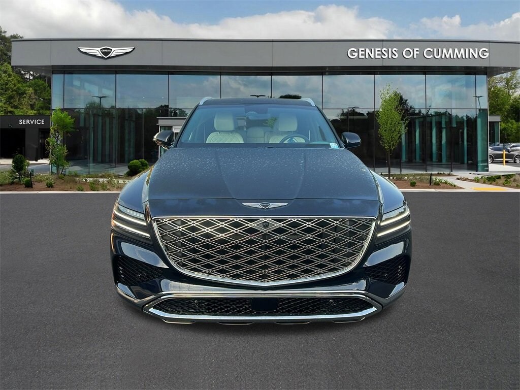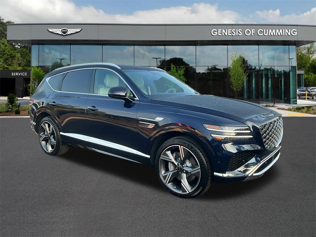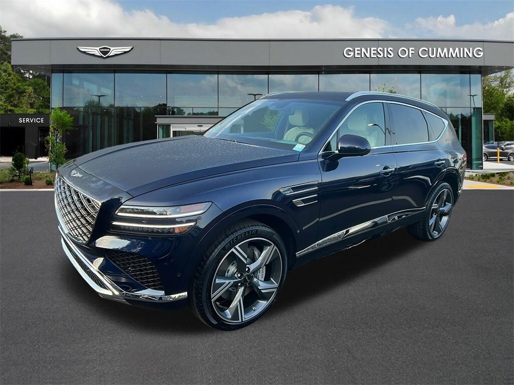 18 Speakers, 3rd row seats: split-bench, 4-Wheel Disc Brakes, ABS brakes, Adaptive suspension, Air Conditioning, Alloy wheels, AM/FM radio: SiriusXM, Anti-whiplash front head restraints, Auto High-beam Headlights, Auto tilt-away steering wheel, Auto-dimming door mirrors, Auto-dimming Rear-View mirror, Automatic temperature control, Brake assist, Bumpers: body-color, Cargo Blocks, Compass, Delay-off headlights, Driver door bin, Driver vanity mirror, Dual front impact airbags, Dual front side impact airbags, Electronic Stability Control, Emergency communication system: Genesis Connected Services, Exterior Parking Camera Rear, Four wheel independent suspension, Fragrance Cartridge, Front anti-roll bar, Front Bucket Seats, Front Center Armrest, Front dual zone A/C, Front reading lights, Fully automatic headlights, Garage door transmitter: HomeLink, Genuine wood console insert, Genuine wood dashboard insert, Genuine wood door panel insert, Heads-Up Display, Heated & Ventilated Front Bucket Seats, Heated door mirrors, Heated front seats, Heated rear seats, Heated steering wheel, Illuminated entry, Knee airbag, Leather steering wheel, Low tire pressure warning, Memory seat, Nappa Leather Seating Surfaces, Navigation System, Occupant sensing airbag, Option Group 01, Outside temperature display, Overhead airbag, Overhead console, Panic alarm, Passenger door bin, Passenger vanity mirror, Power door mirrors, Power driver seat, Power Liftgate, Power moonroof, Power passenger seat, Power steering, Power windows, Radio data system, Radio: AM/FM/SiriusXM/HD Bang & Olufsen Sound Sys, Rain sensing wipers, Rear air conditioning, Rear anti-roll bar, Rear dual zone A/C, Rear reading lights, Rear seat center armrest, Rear side impact airbag, Rear window defroster, Rear window wiper, Reclining 3rd row seat, Remote keyless entry, Security system, Speed control, Speed-sensing steering, Speed-Sensitive Wipers, Split folding rear seat, Spoiler, Steering wheel memory, Steering wheel mounted audio controls, Tachometer, Telescoping steering wheel, Tilt steering wheel, Traction control, Trip computer, Turn signal indicator mirrors, Variably intermittent wipers, Ventilated front seats, Ventilated rear seats, Wheels: 22" x 9.5J Dark Gray Matte Alloy.